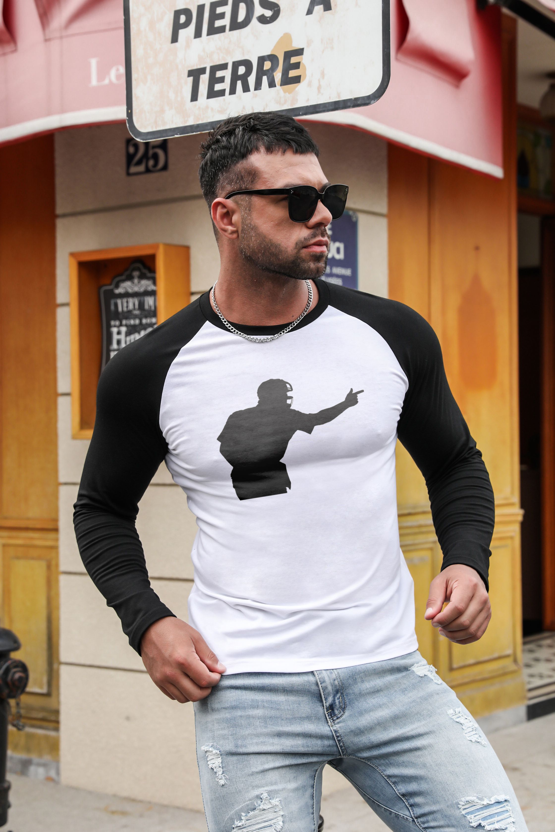 Men’s Baseball Figure Print Color Block Long Sleeve Top