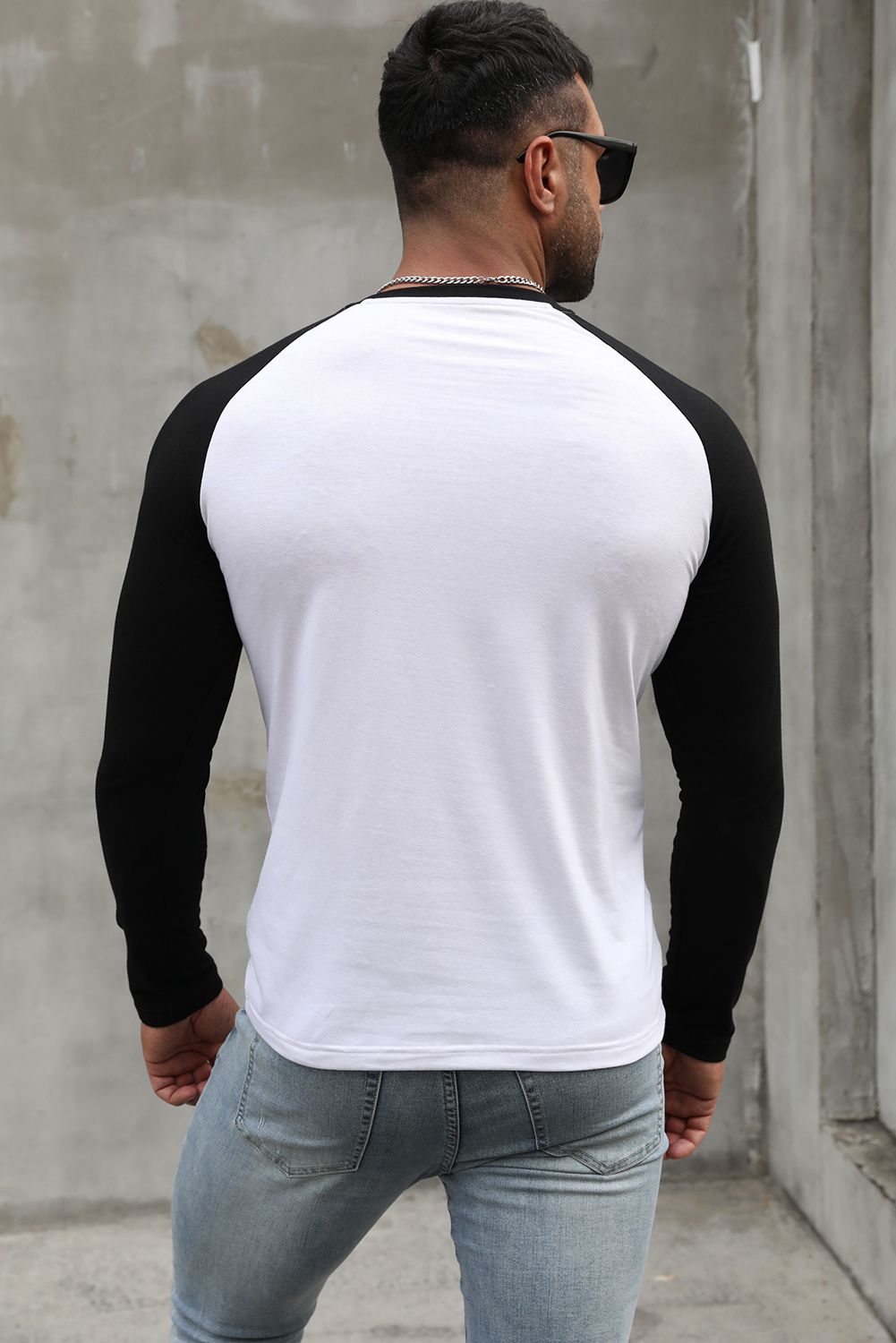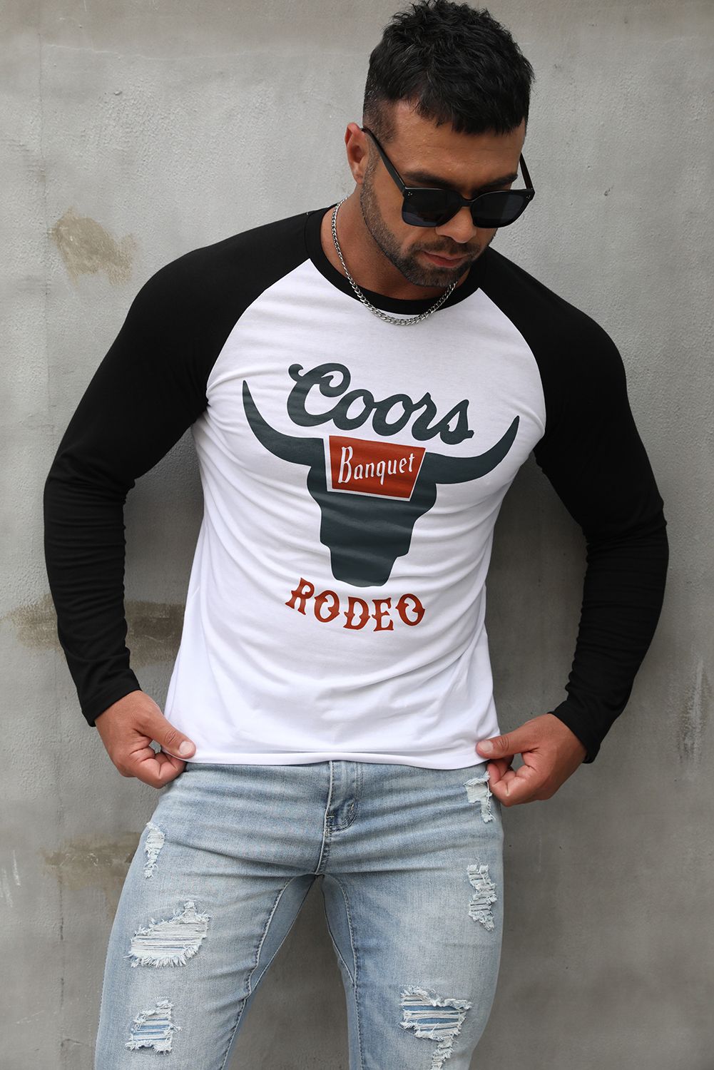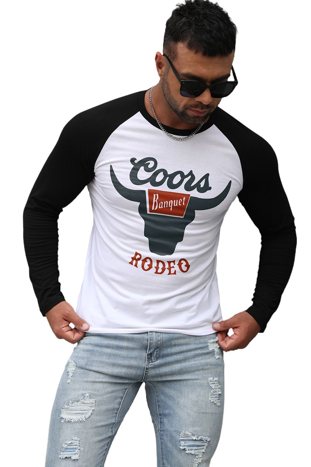 Men's Steer Head Letter Print Color Block Long Sleeve Top