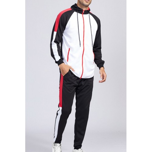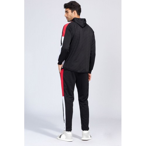 Men's Hooded Color Block Sweatshirt Sports Suit