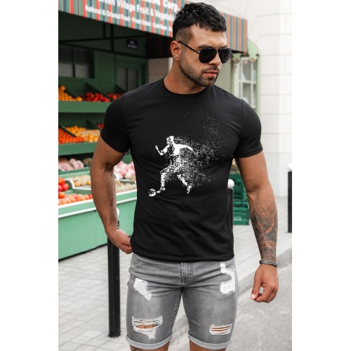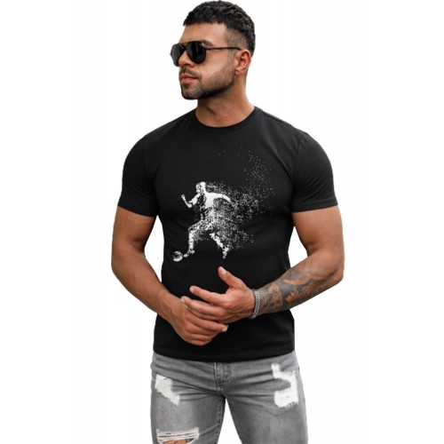 Black Soccer Graphic Print Crew Neck Short Sleeve T Shirt