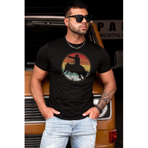 Black Men's Western Cowboy Graphic Print Short Sleeve T Shirt
