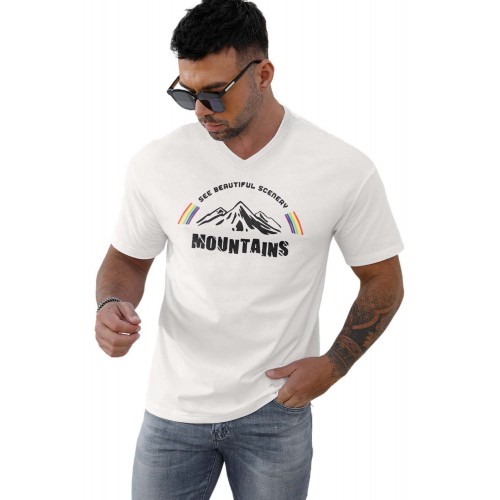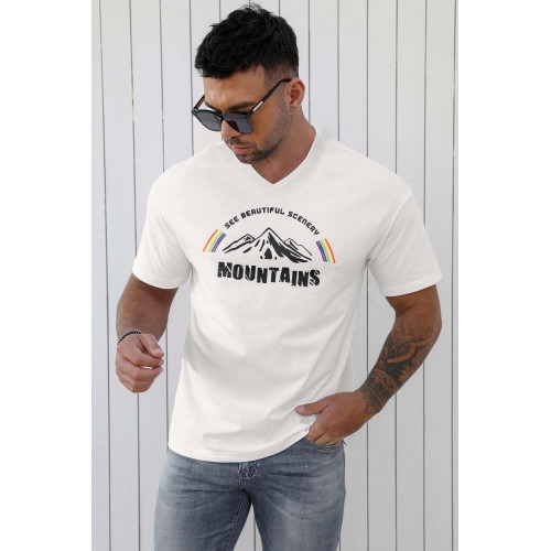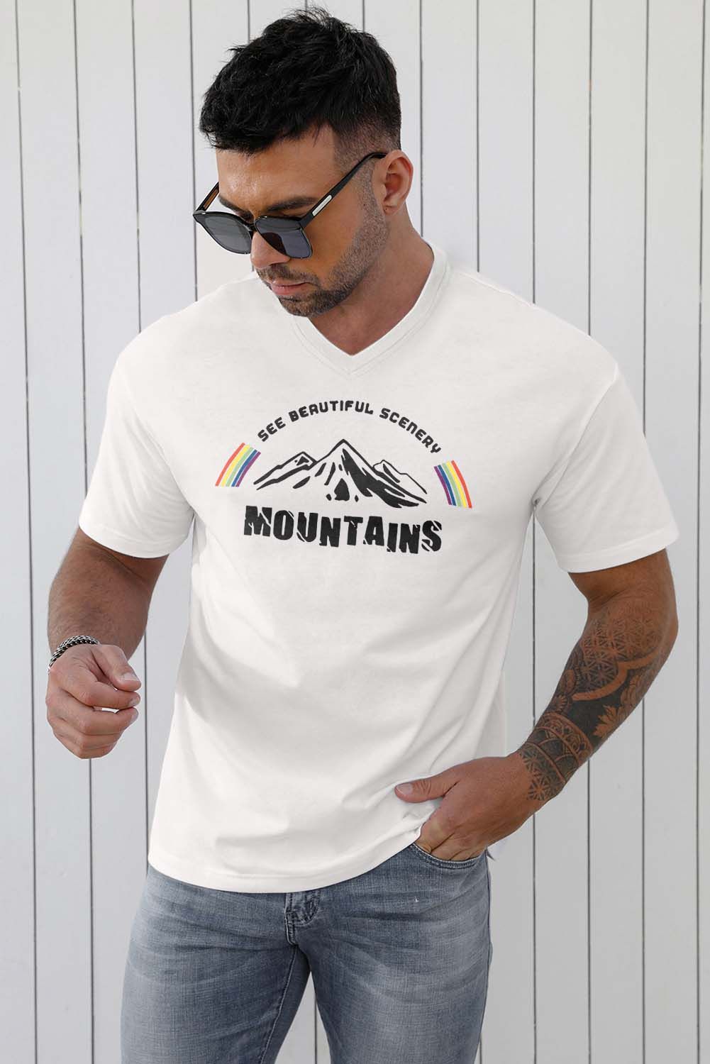 See Beautiful Scenery Mountains Print T Shirt for Men