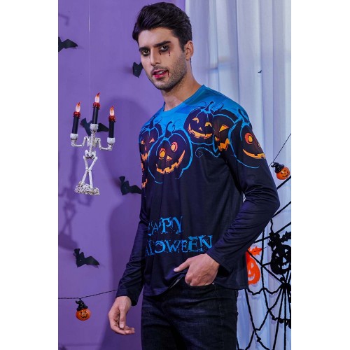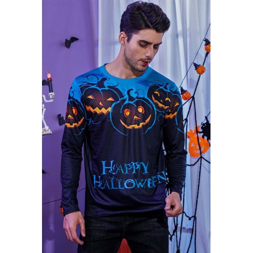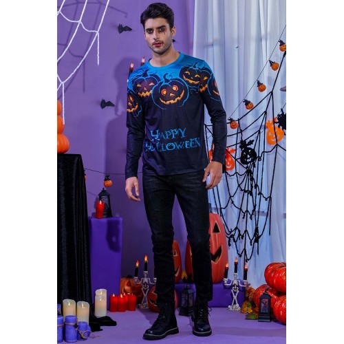 Men's 3D Halloween Pumpkin Print Knit Long Sleeve T-Shirt