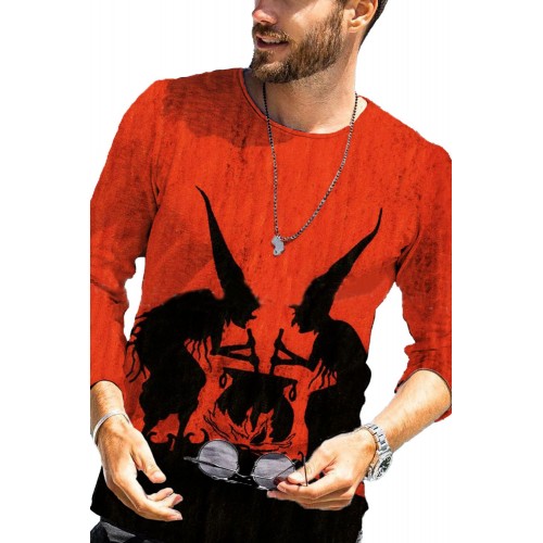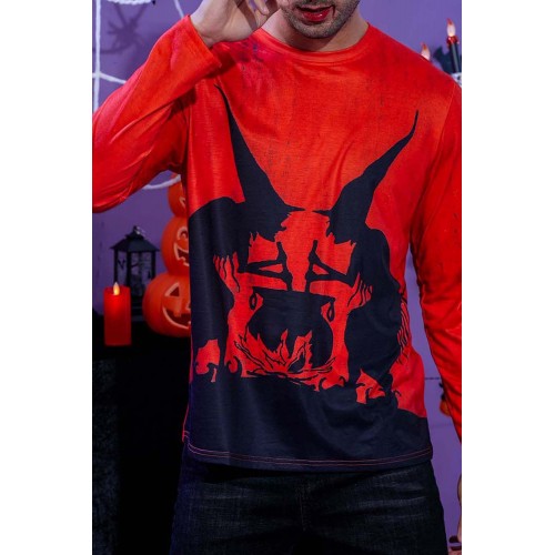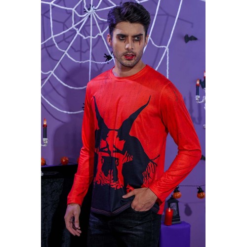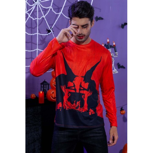 Men's Halloween Miko Print Long Sleeve Knit T-shirt
