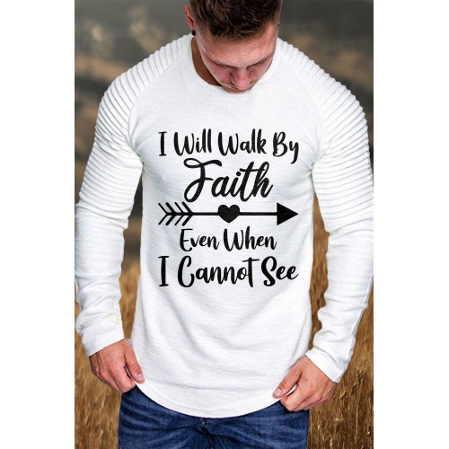 White I Will Walk By Faith Ripped Sleeve Men Long Sleeve Tee