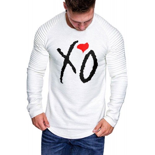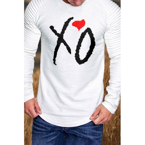 White XO Heart Print Pleated Sleeve Slim-fit Men's T-shirt