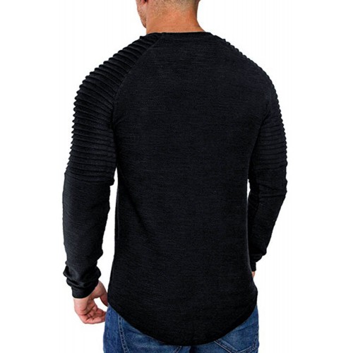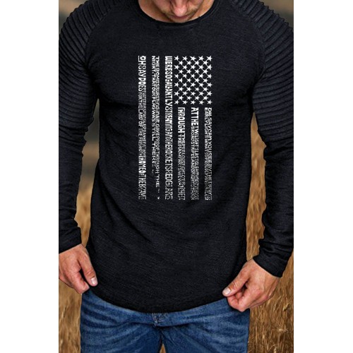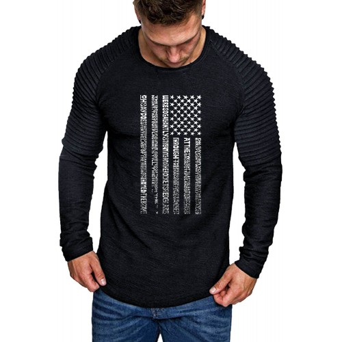 Pleated Long Sleeve Letter US Flag Print Men's Graphic T-shirt