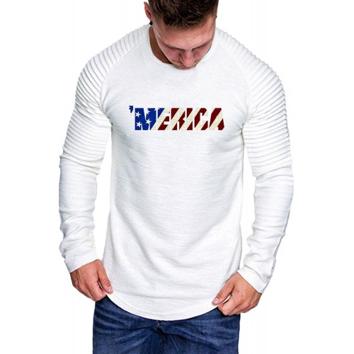White America Flag Letter Print Pleated Sleeve Men's Graphic Tee