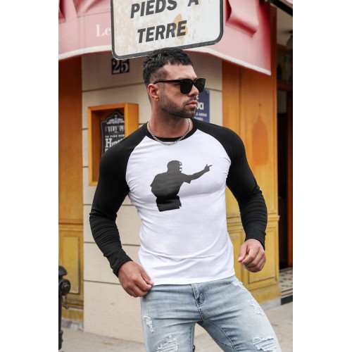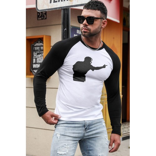 Men’s Baseball Figure Print Color Block Long Sleeve Top