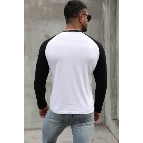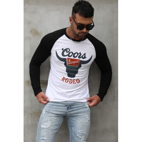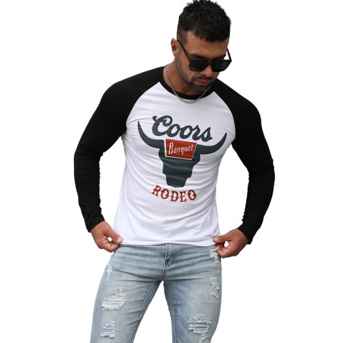Men's Steer Head Letter Print Color Block Long Sleeve Top