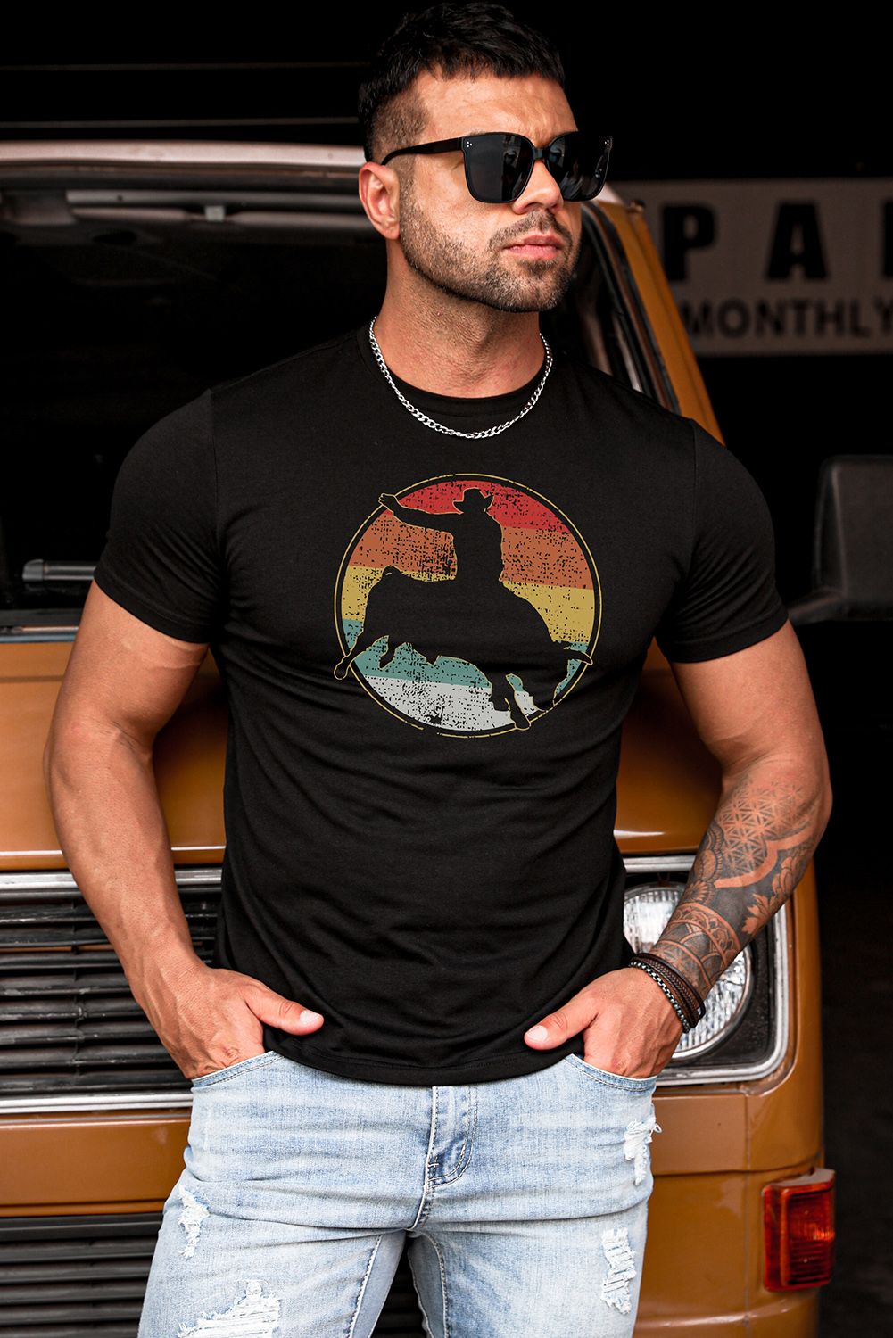 Men's Western Cowboy Graphic Print Short Sleeve T Shirt