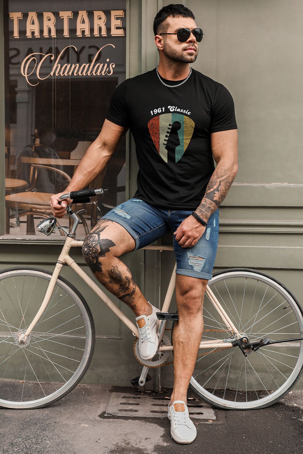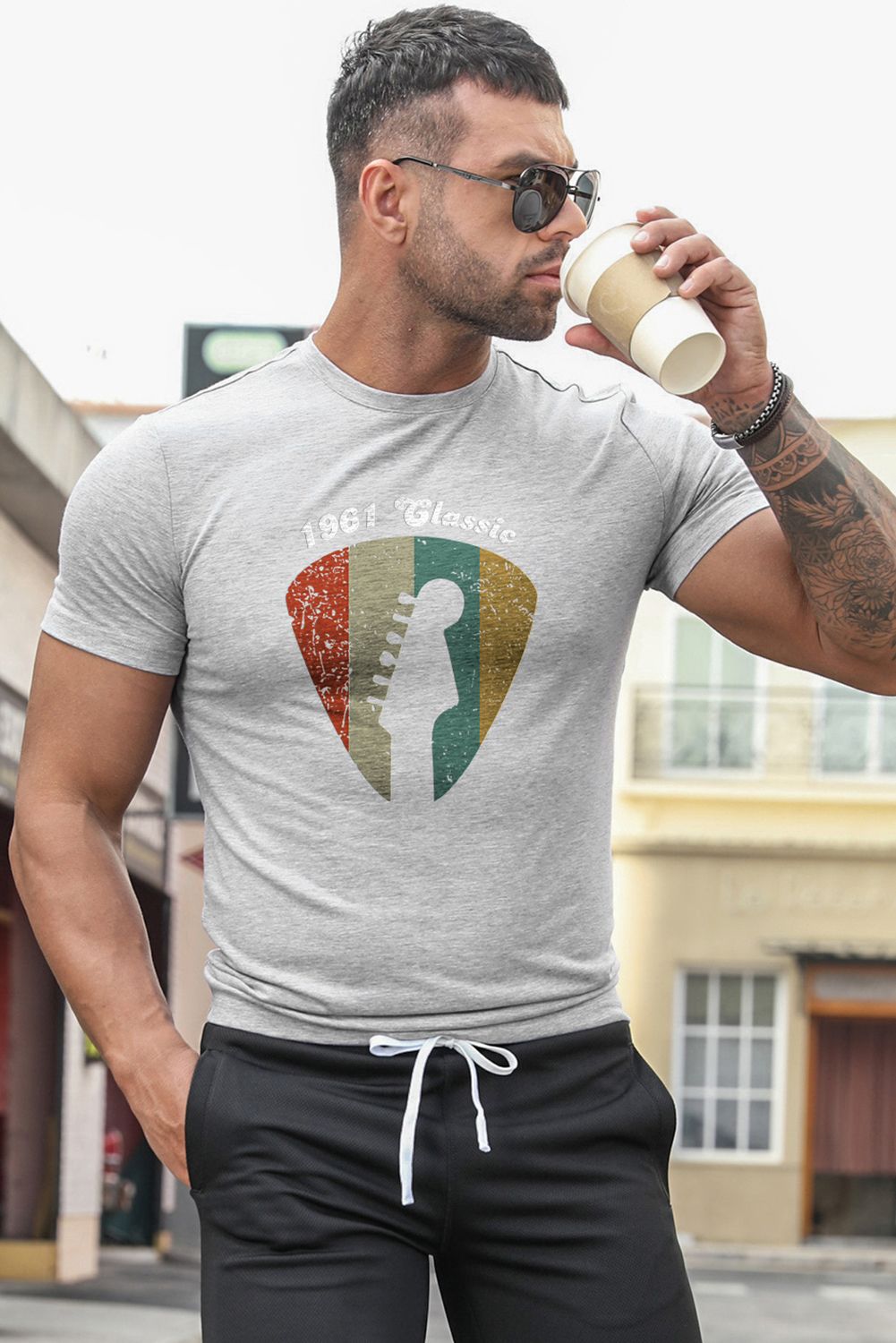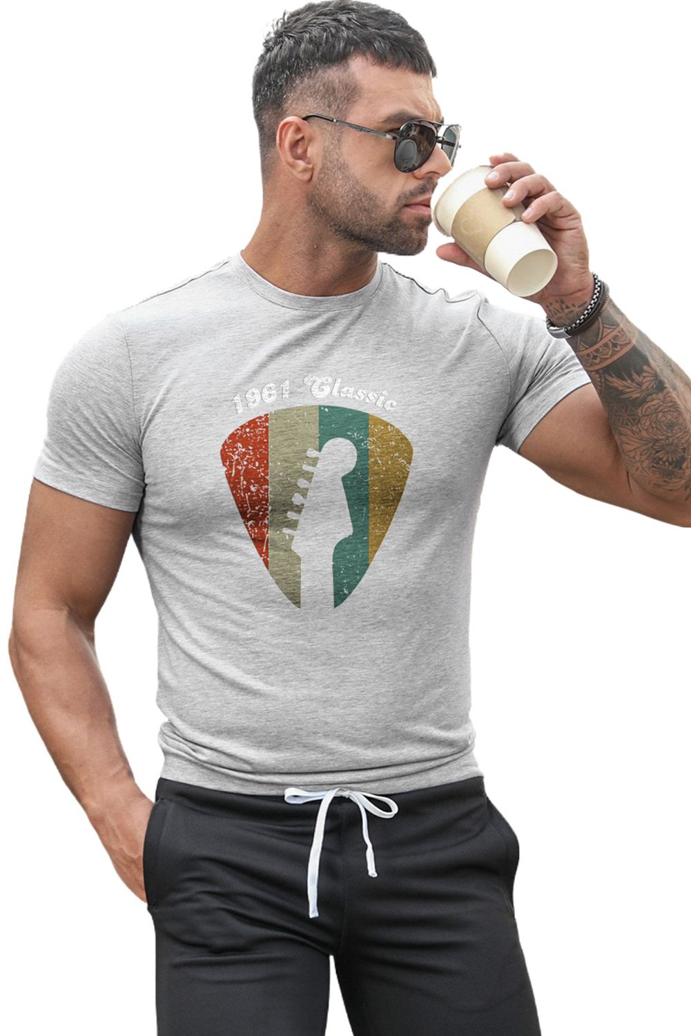 1961 Classic Striped Guitar Color Block Men's Graphic Tee