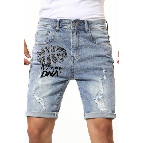 It's In My DNA Basketball Print Ripped Rolled Hem Men's Denim Shorts