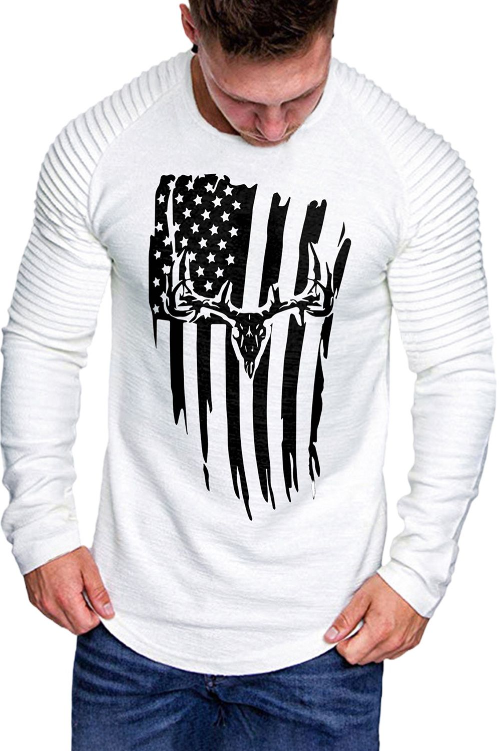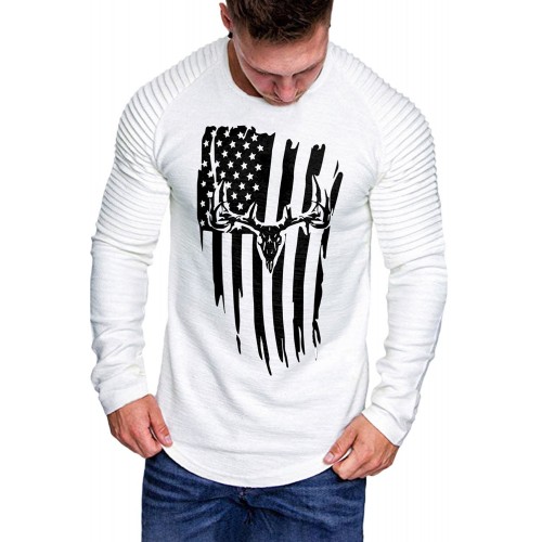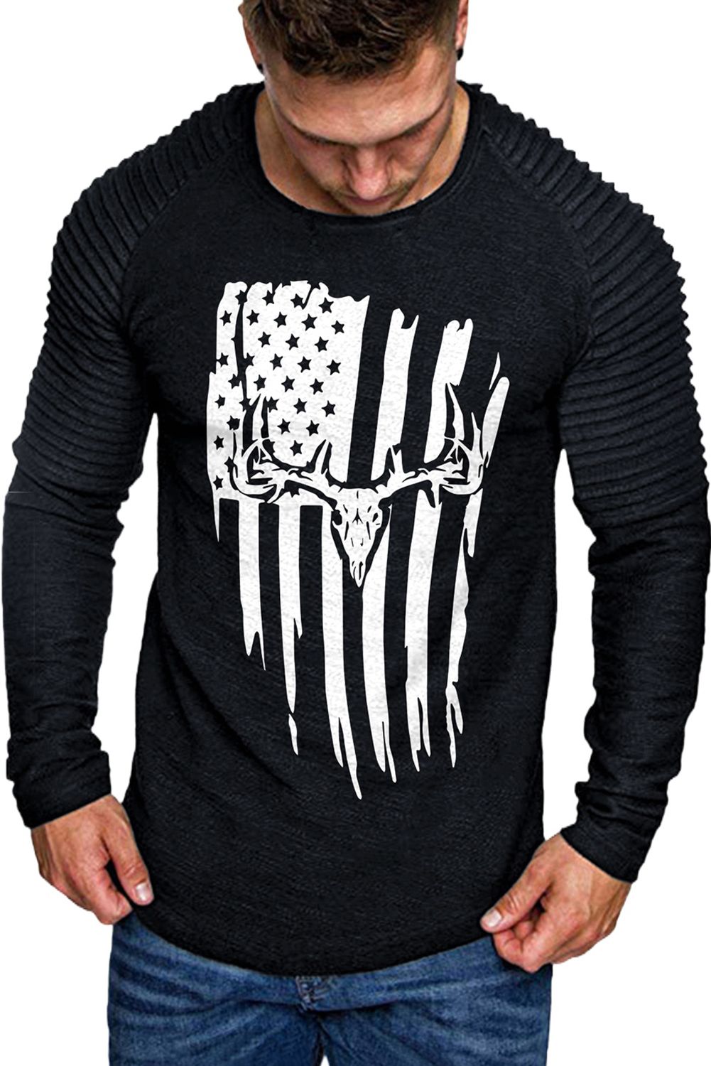 Men's Pleated Long Sleeve America FlagGraphic Print Top